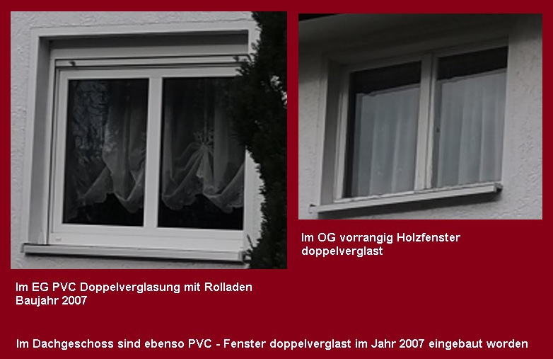 Fenster: PVC-Doppelverglasung BJ.2007, teilweise noch Holz