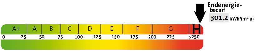 Energieverbrauchskennwert: 301,2 kWh / (m² x a) - Warmwasser nicht enthalten